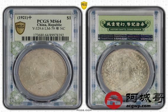 Lot:11 黄油原光 十年大头壹圆 PCGS MS64