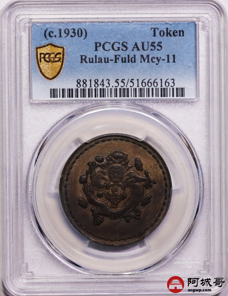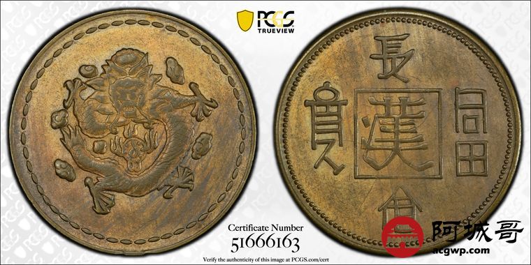 Lot:32 民国1930年“长命富贵”中心“汉”飞龙铜币 PCGS AU55
