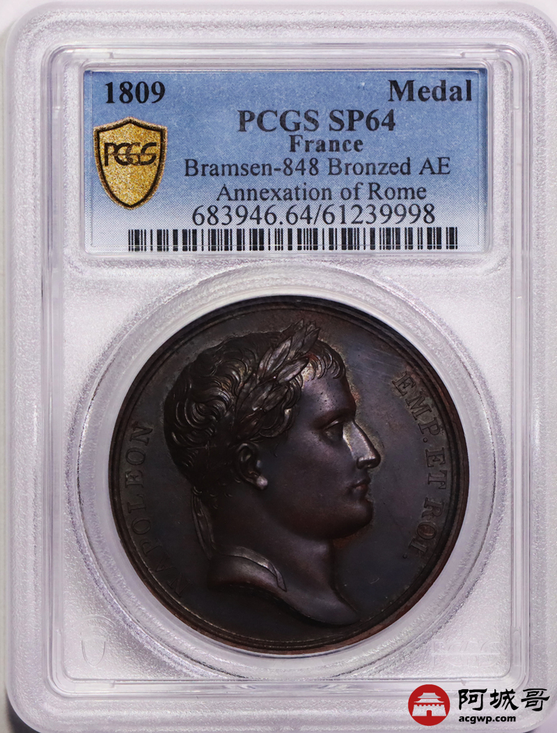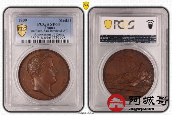 Lot:14 PCGS-SP64 亚军分 法国1809年拿破仑法兰西帝国兼并罗马铜样章