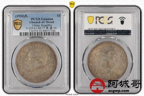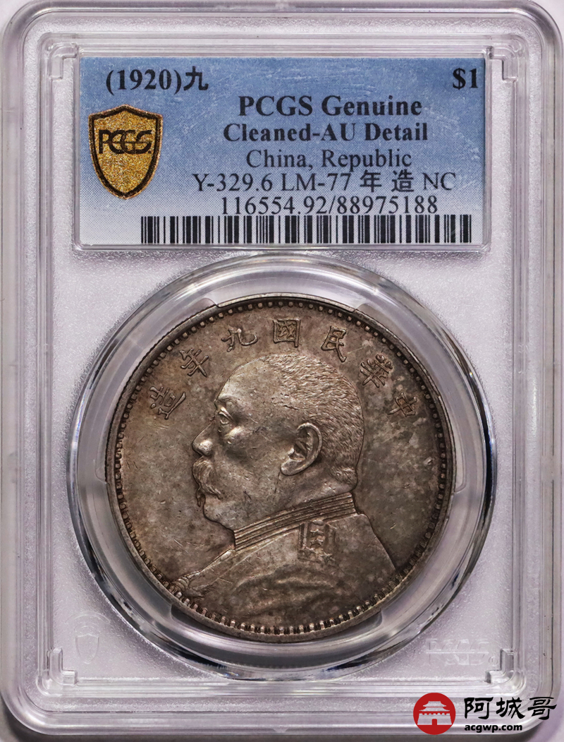 Lot:20 淡彩包浆 九年大头精发三年背 PCGS AU