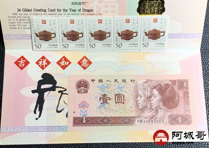 Lot:10 24K镀金龙年贺卡硬币 1996年壹元 邮票 10张