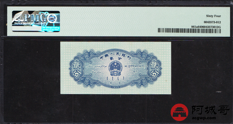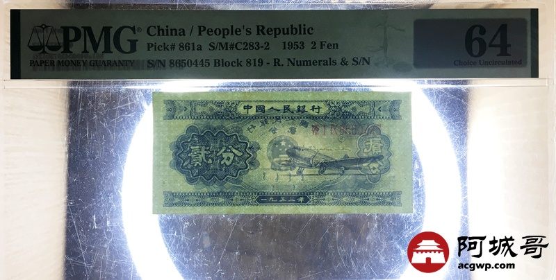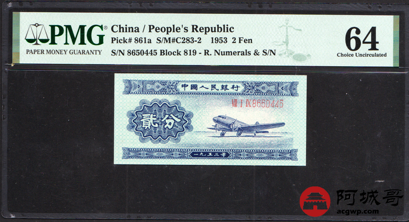 Lot:24 二版 1953年 长号贰分 飞机 PMG 64
