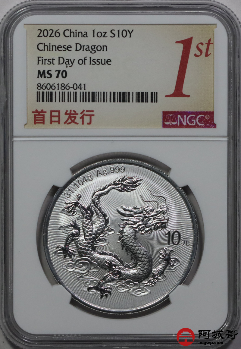 Lot:46 2026年中国龙银币 NGC MS70首日标