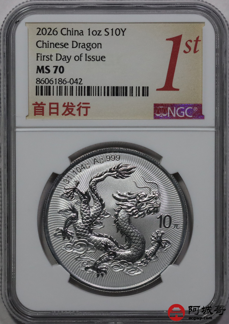 Lot:47 2026年中国龙银币 NGC MS70首日标