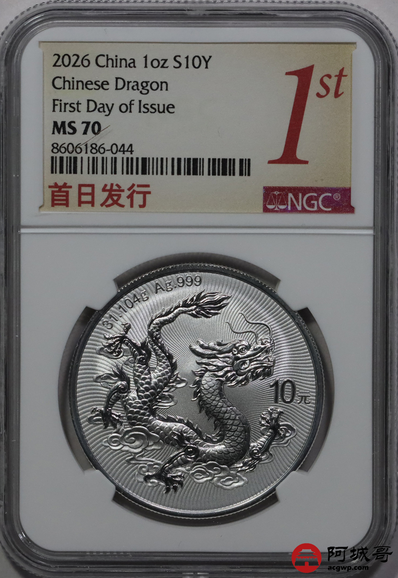 Lot:49 2026年中国龙银币 NGC MS70首日标