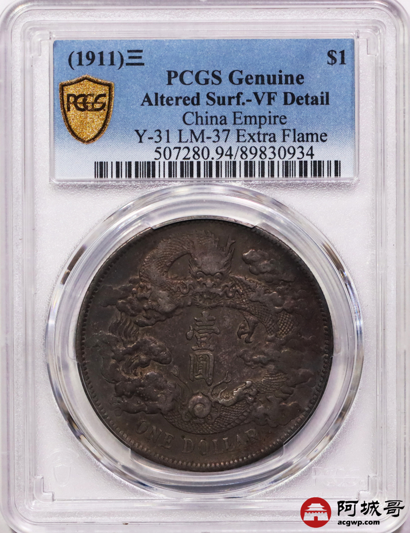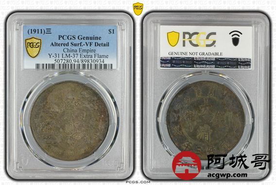 Lot:22 酱五彩全深打 大清宣三壹圆 PCGS VF