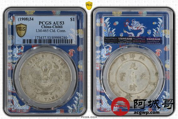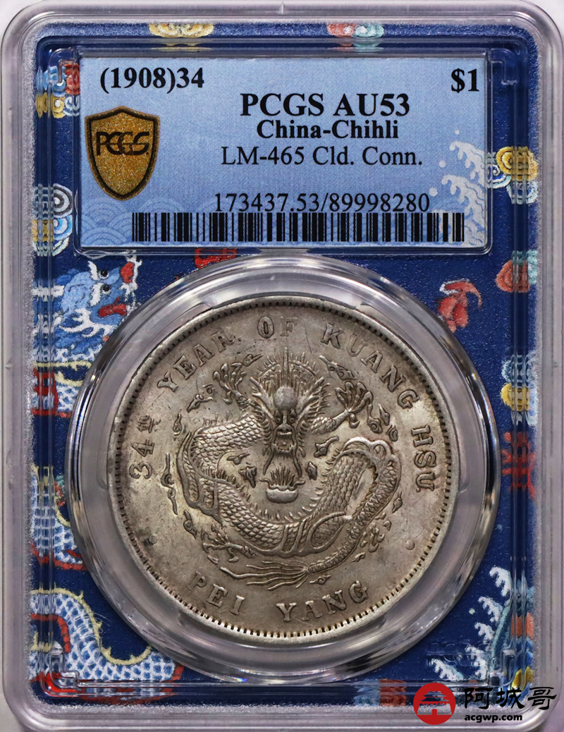Lot:12 黄油底光 原味 北洋34七钱二分 PCGS AU53