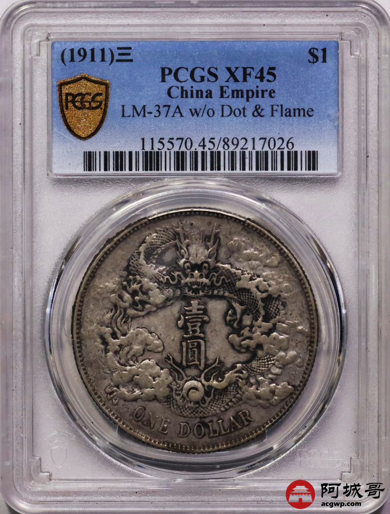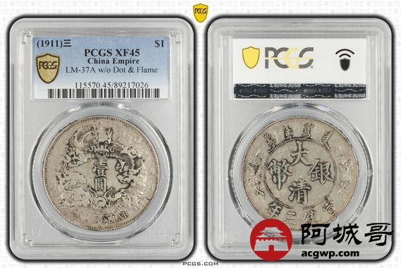 Lot:null 原味老包浆 大清宣三壹圆 PCGS XF45