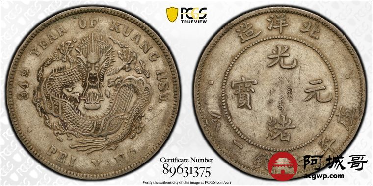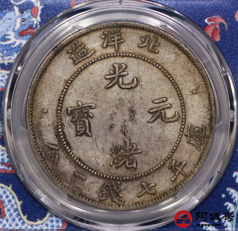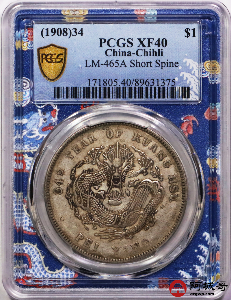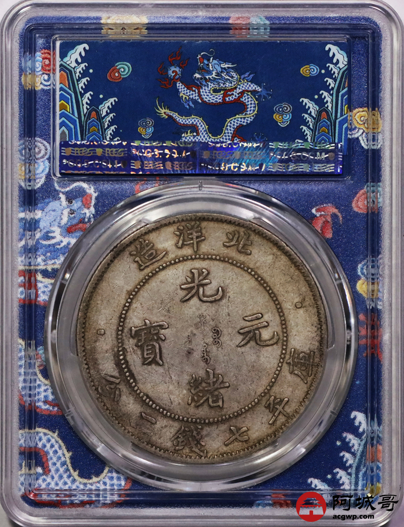 Lot:17 原味老包浆 北洋34七钱二分短尾龙 PCGS XF40