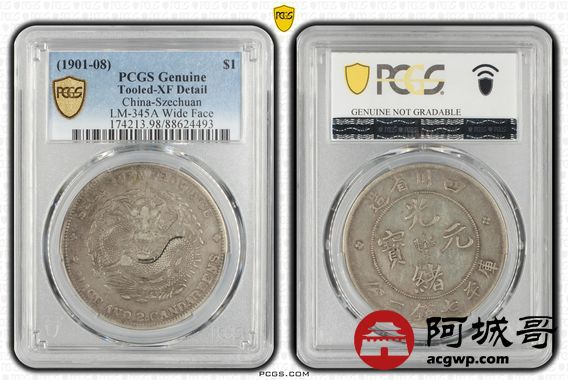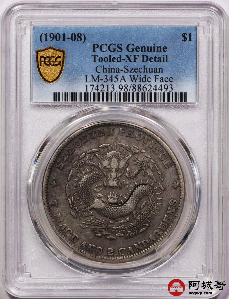 Lot:24 原味老包浆 四川光绪七钱二分大头龙 PCGS XF
