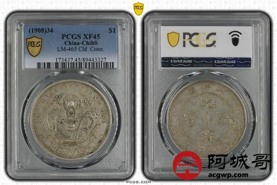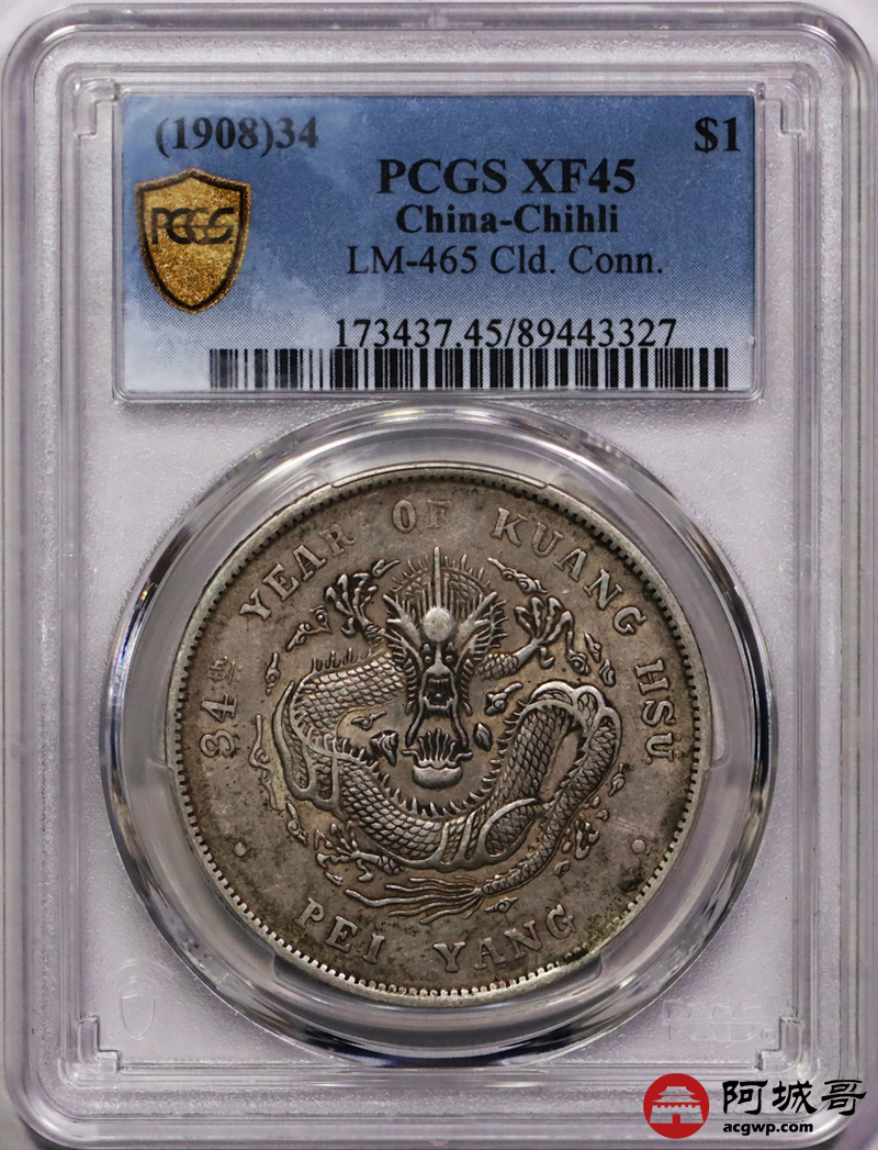 Lot:18 原味老包浆 北洋34七钱二分 PCGS XF45