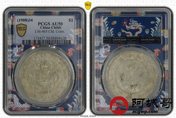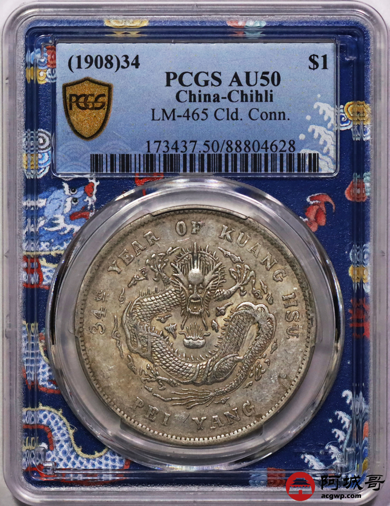 Lot:8 原味老包浆 北洋34七钱二分 PCGS AU50