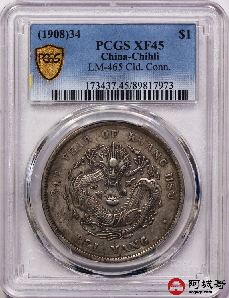 Lot:15 原味老包浆 北洋34七钱二分 PCGS XF45