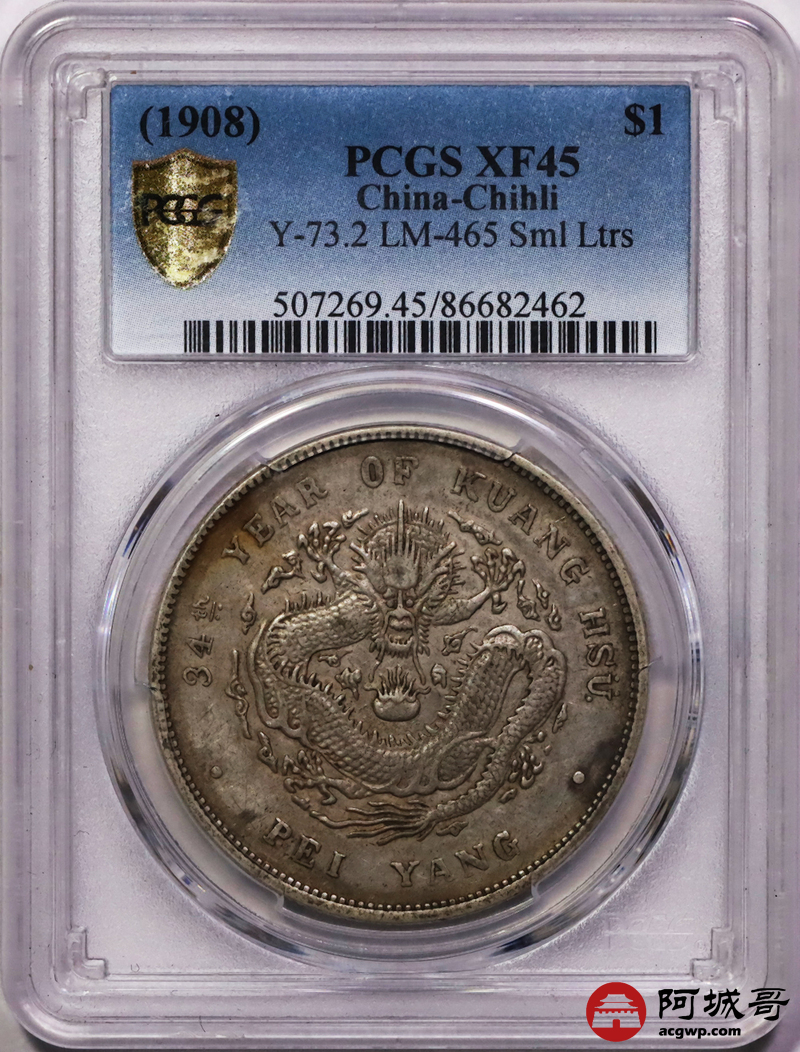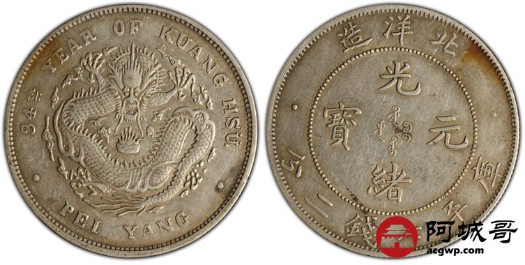 Lot:9 原味老包浆 北洋34七钱二分小字版 PCGS XF45