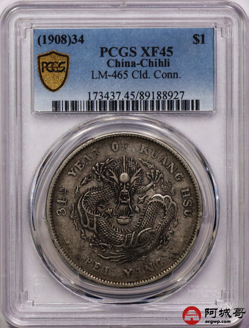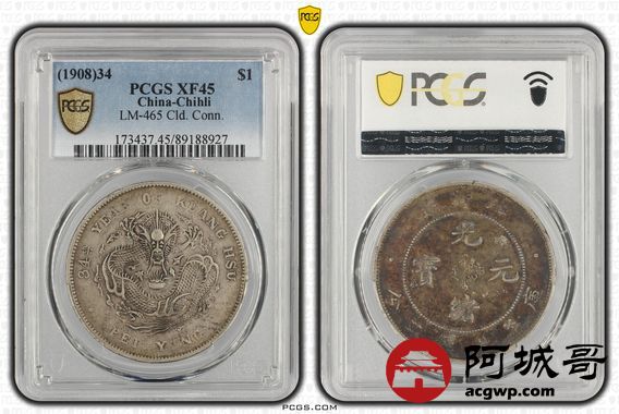 Lot:null 原味卷尾老酱彩 北洋34七钱二分 PCGS XF45