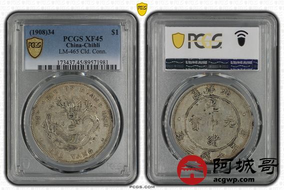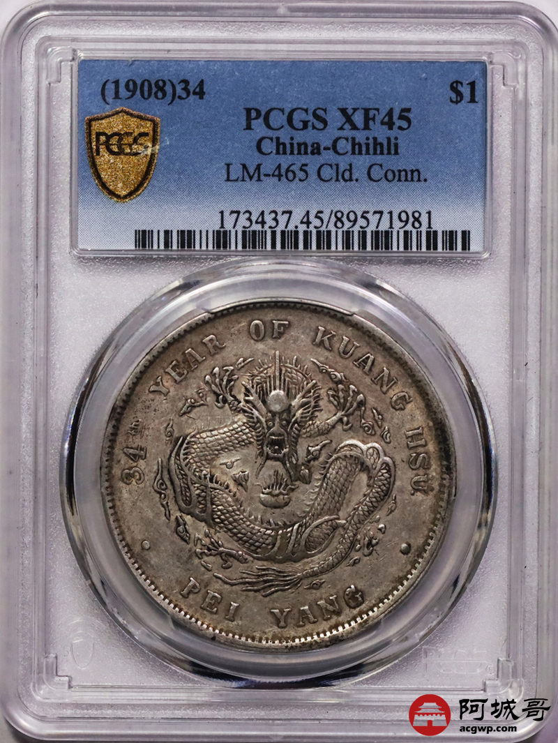 Lot:11 原味黄油底光 北洋34七钱二分 PCGS XF45