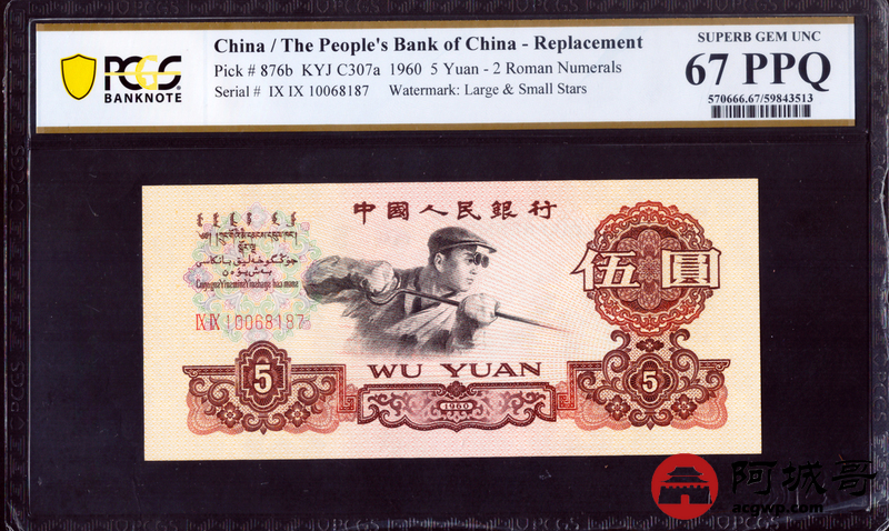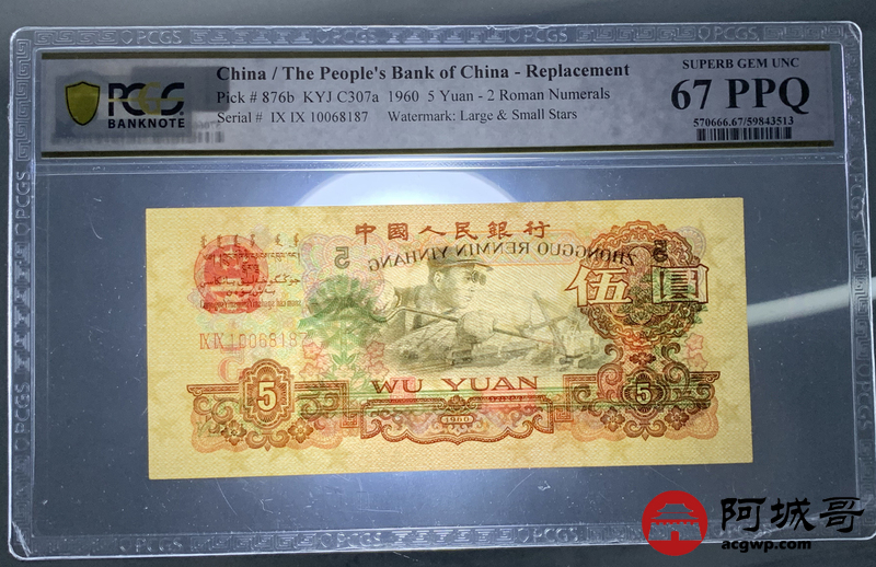 Lot:37 1960年 炼钢伍元补号 PCGS 67PPQ