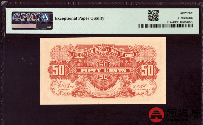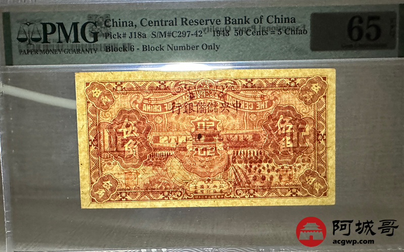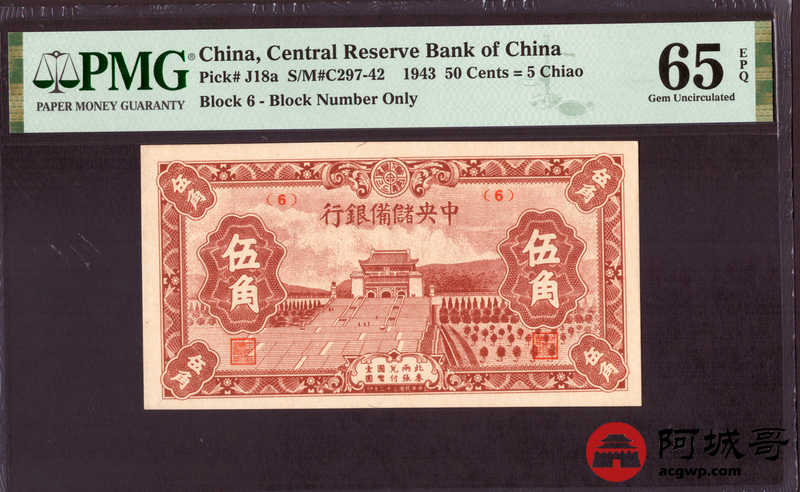 Lot:60 民国32年 中央储备银行 伍角 PMG 65EPQ