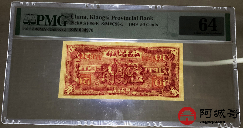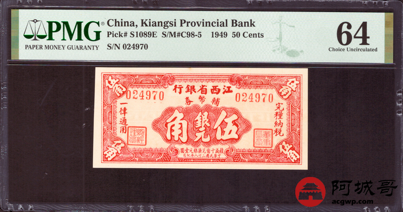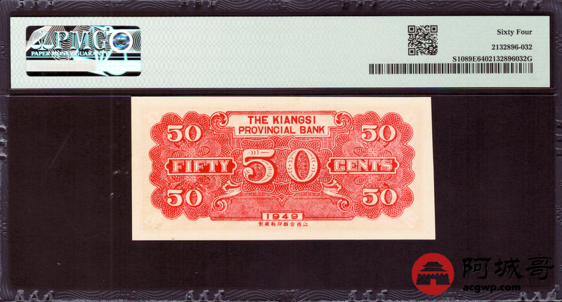 Lot:59 民国38年 江西省银行 伍角 PMG 64