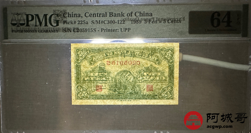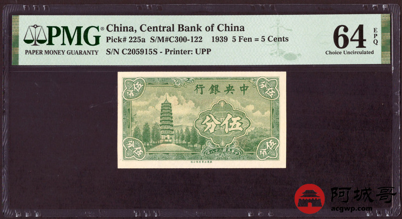 Lot:42 民国28年 中央银行 伍分 PMG 64EPQ 好号无47