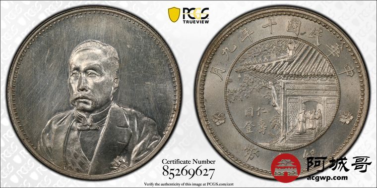 Lot:13 镜面曝光 拉丝底板 徐世昌仁寿同登纪念币 PCGS MS62