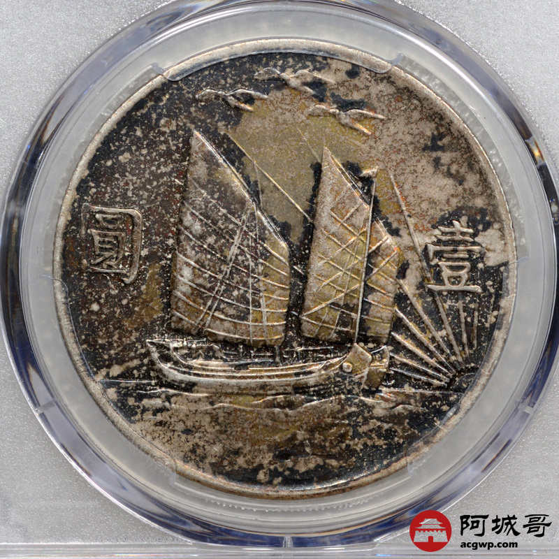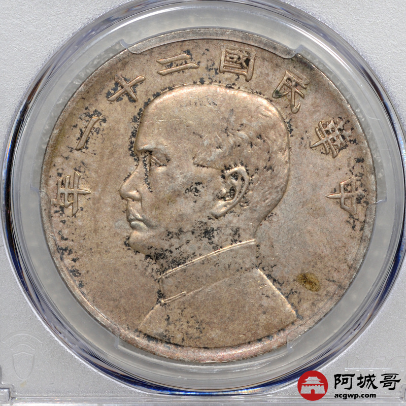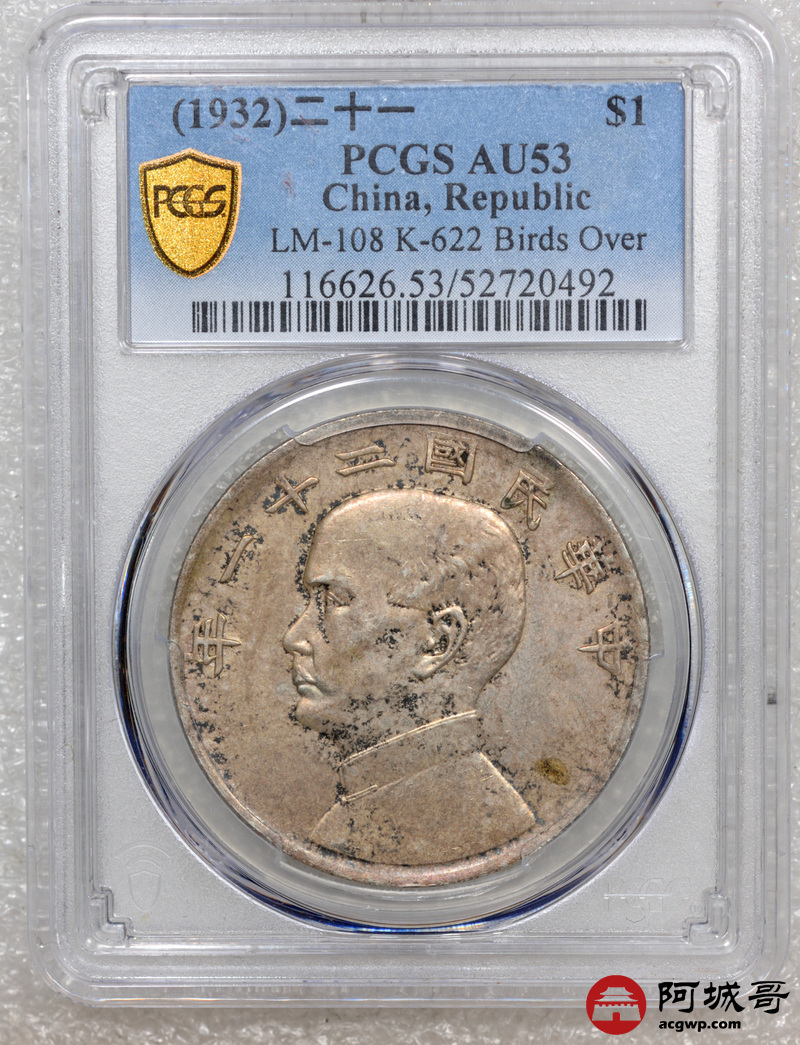 Lot:15 原味 酱彩包浆 民国二十一年孙像三鸟壹圆 PCGS AU53