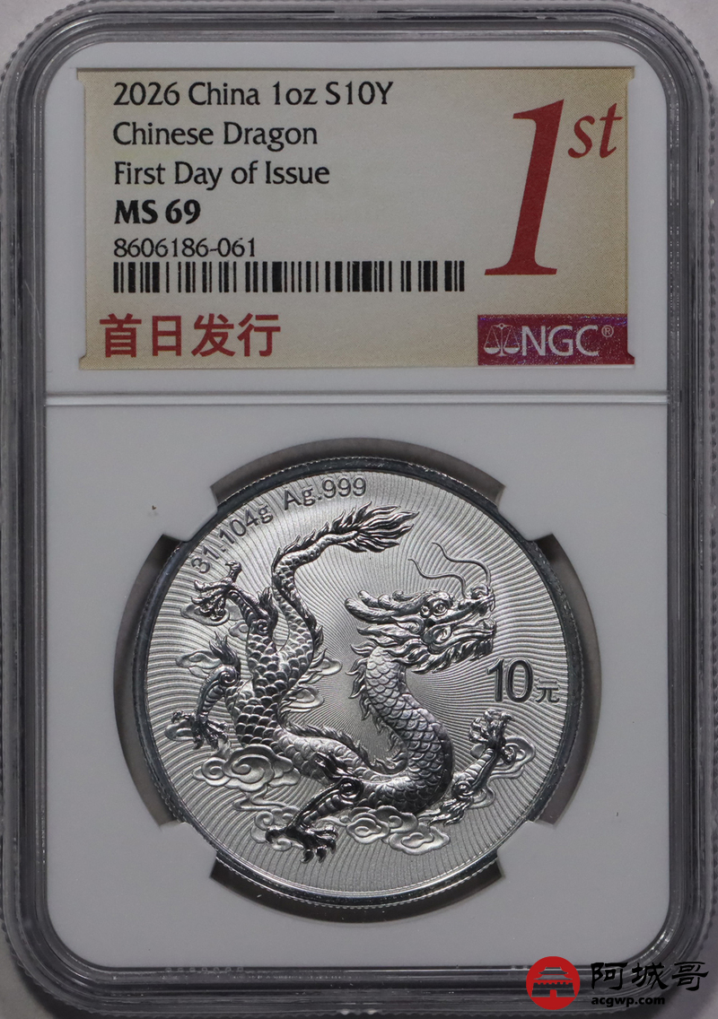 Lot:39 2026年中国龙银币NGC MS69首日 倒置串号
