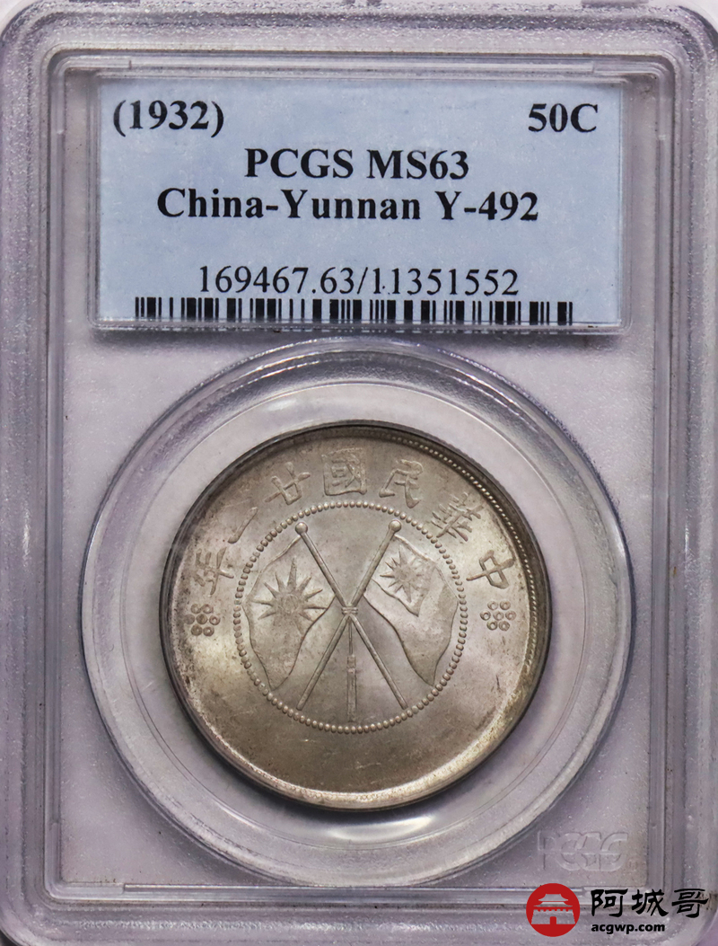 Lot:26 原色光 二十一年双旗半圆 PCGS MS63