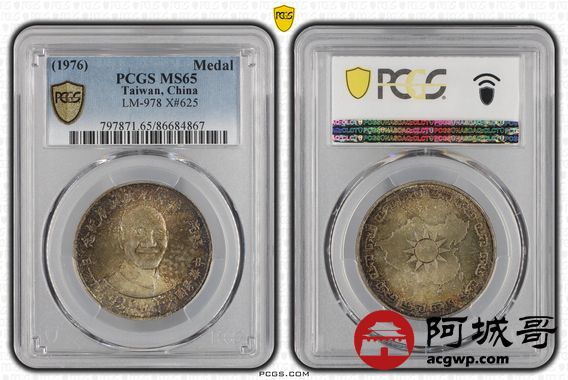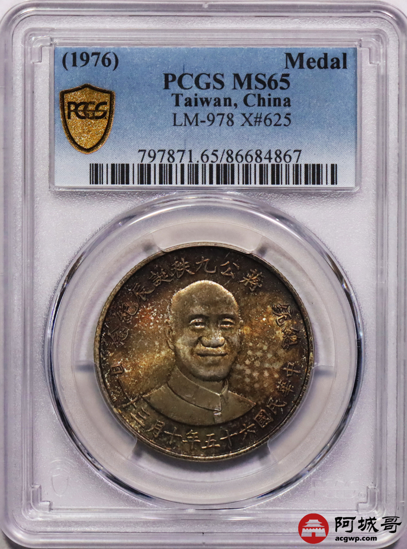 Lot:34 原光 五彩 蒋公纪念币 PCGS MS65