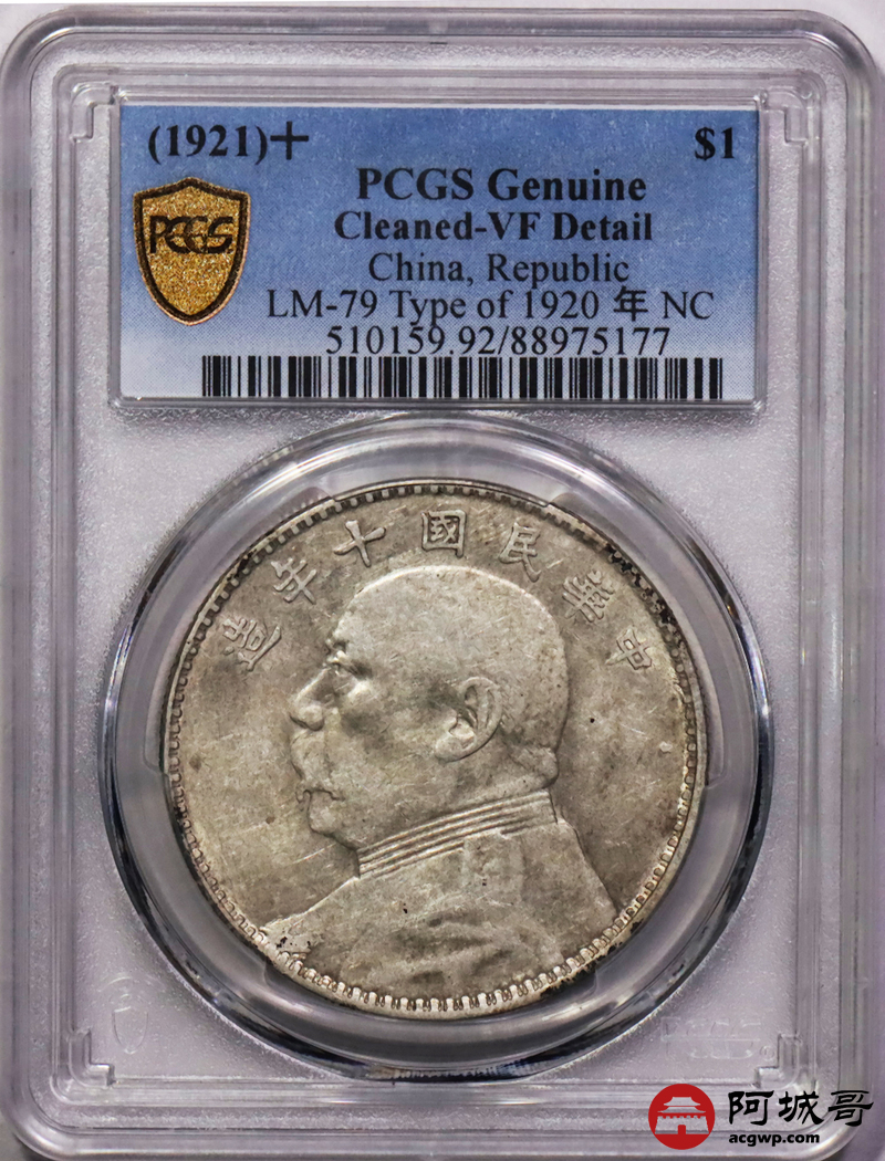 Lot:31 民国十年大头壹圆 十年九像 PCGS VF