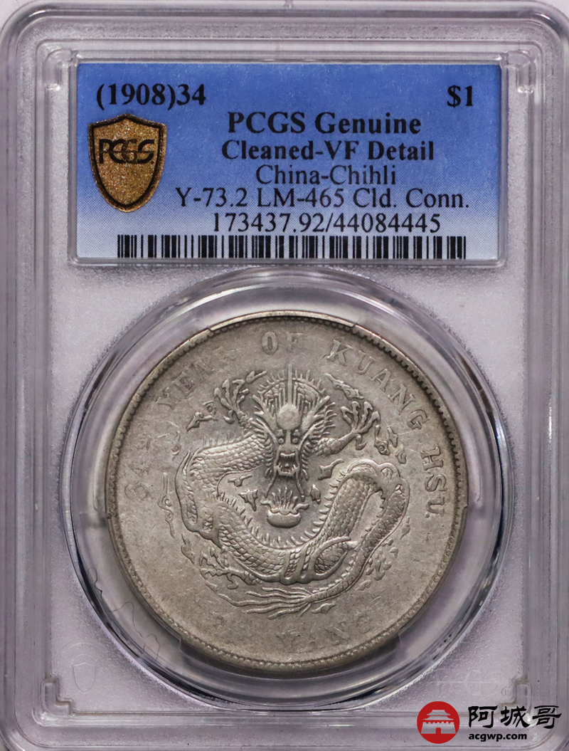 Lot:16 原味北洋34年七钱二分 PCGS VF