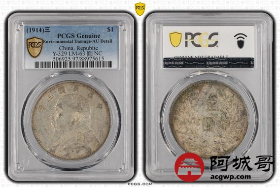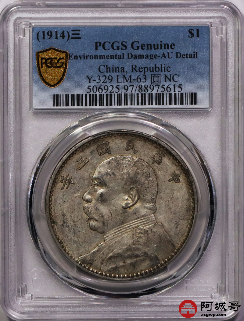Lot:3 原味 底光 三年大头壹圆 PCGS AU