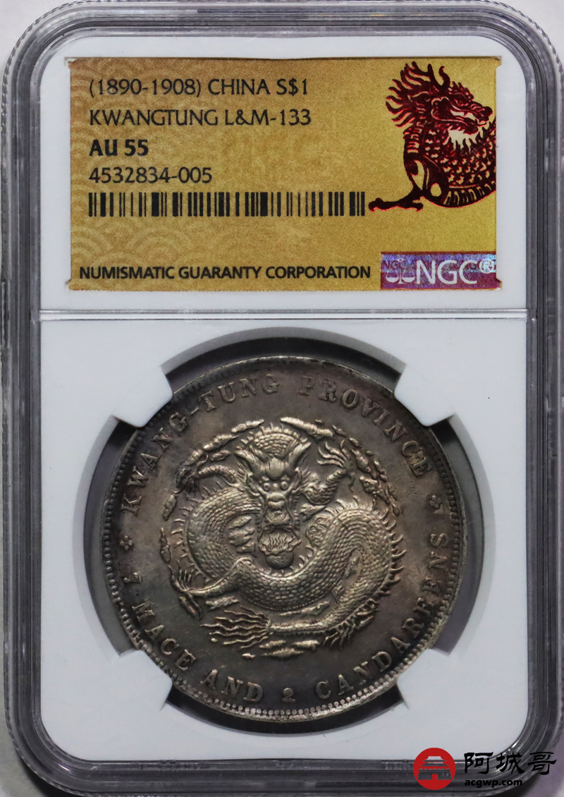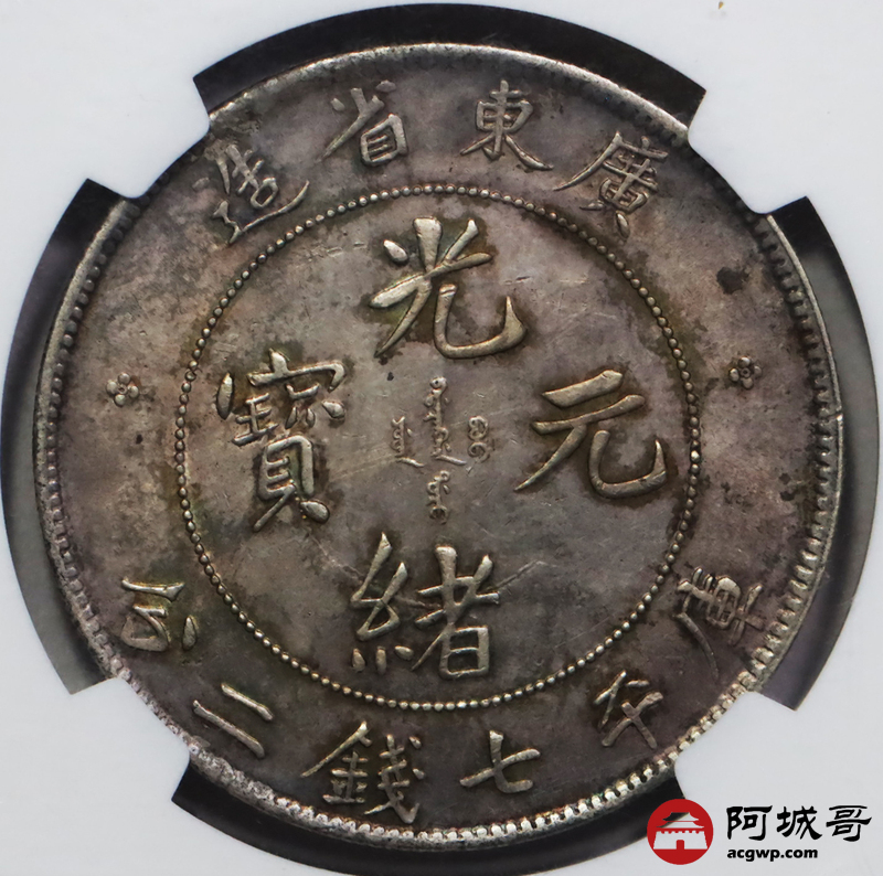 Lot:24 原味 淡彩转光 广东光绪七钱二分 NGC AU55