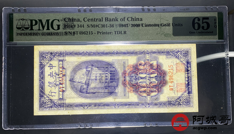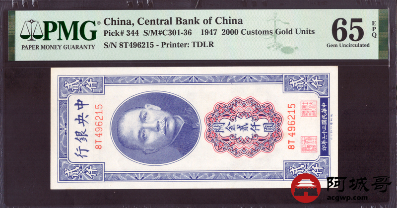 Lot:2 民国三十六年 关金贰仟圆 PMG 65EPQ