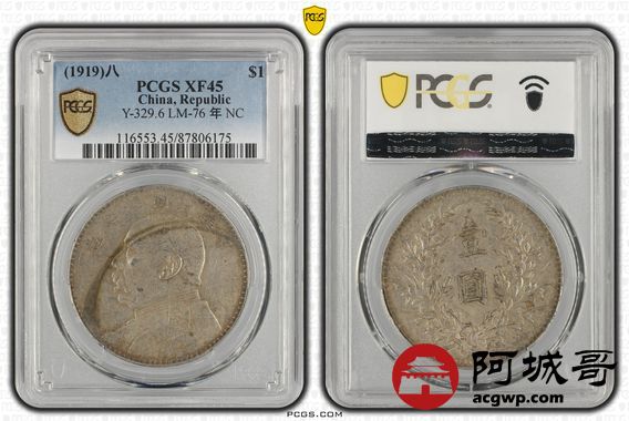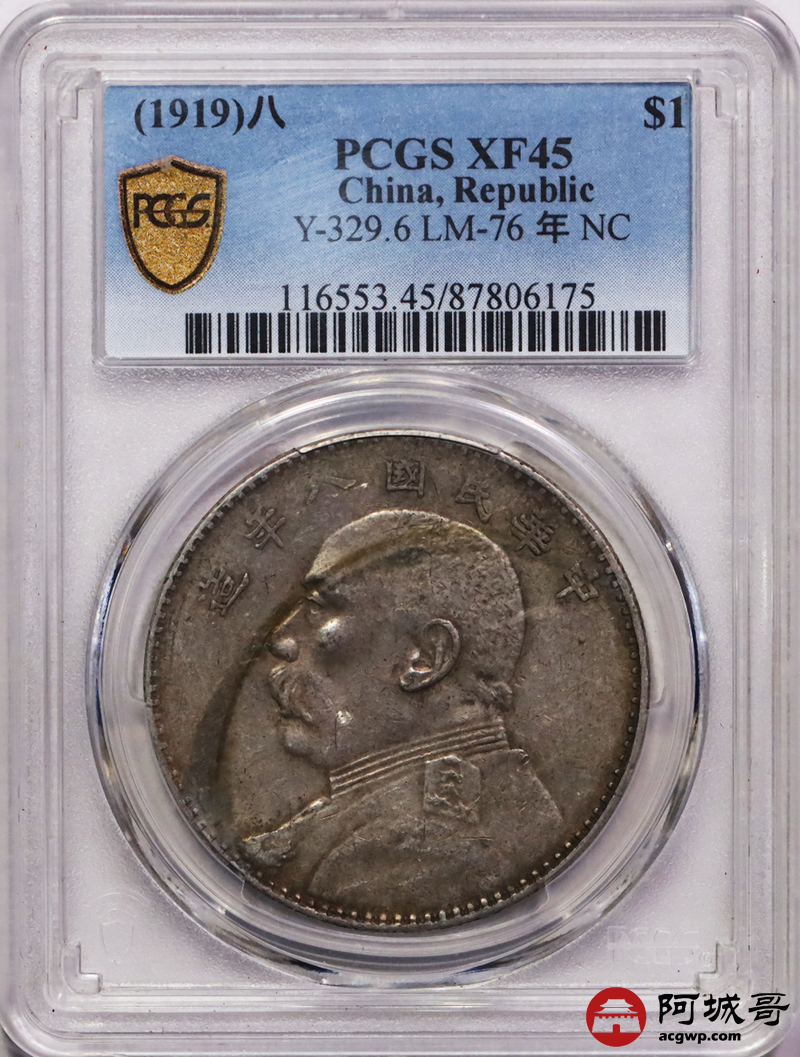 Lot:20 原味 包浆 八年大头壹圆 PCGS XF45