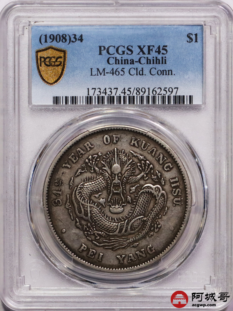 Lot:14 原味 北洋34年七钱二分 PCGS XF45