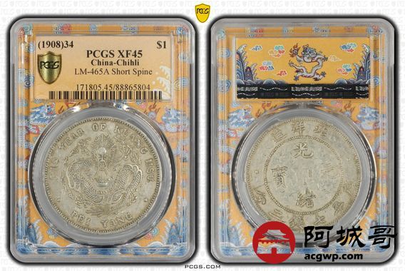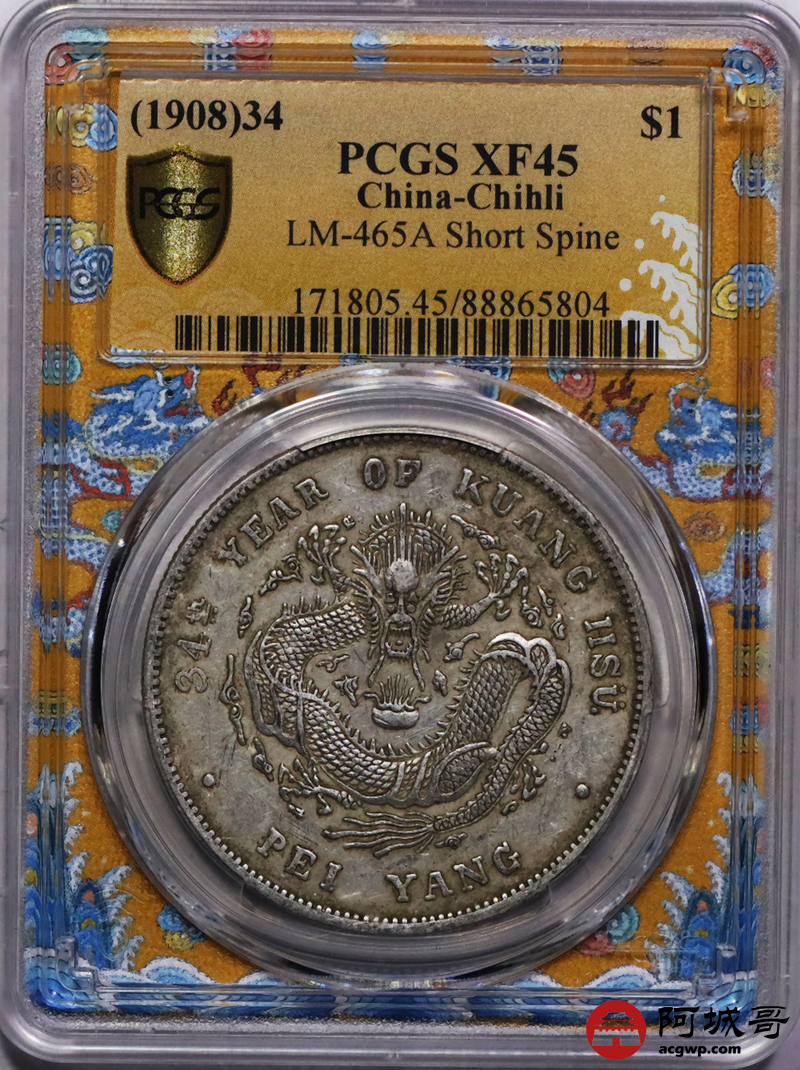 Lot:16 原汁原味 北洋34年七钱二分 短尾 PCGS XF45