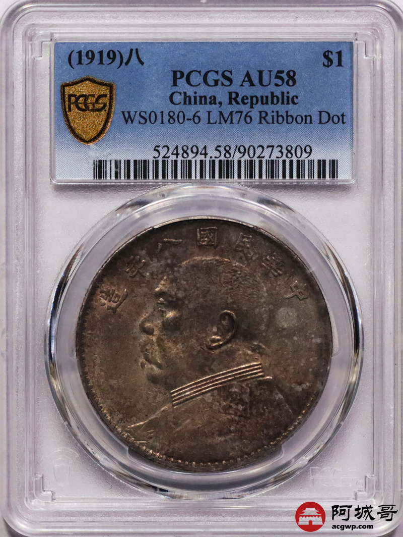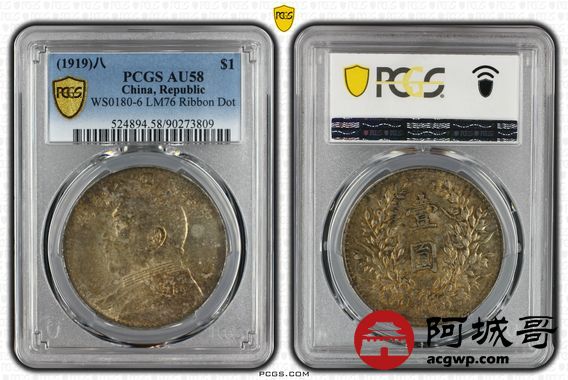 Lot:17 深打 黄油彩转光 八年大头草头华结上点 PCGS AU58