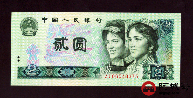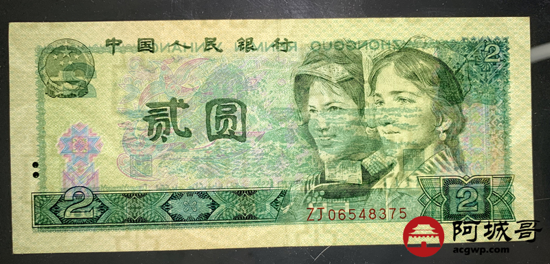 Lot:43 A、四版 1990年 2元 绿幽灵补号之王冠号ZJ 9成新