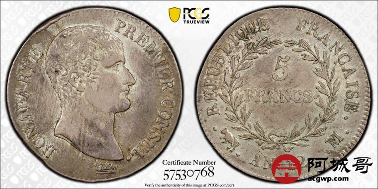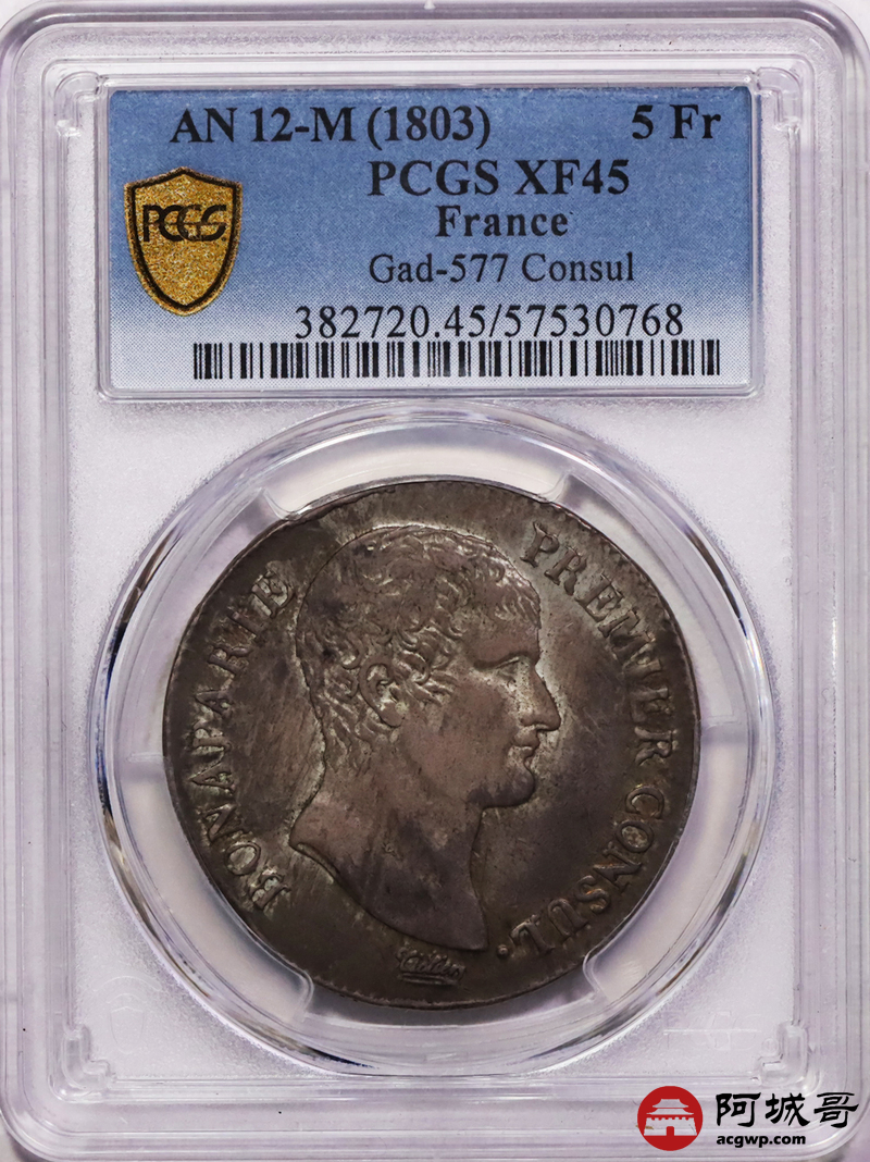 Lot:30 1803年拿破仑第一执政5法郎银币 PCGS XF45