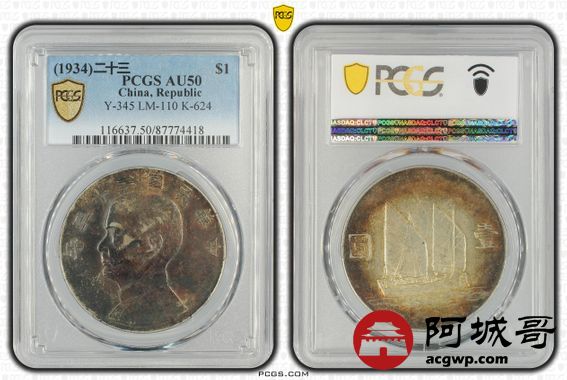 Lot:3 原味酱红老酱彩 二十三年船洋 PCGS AU50