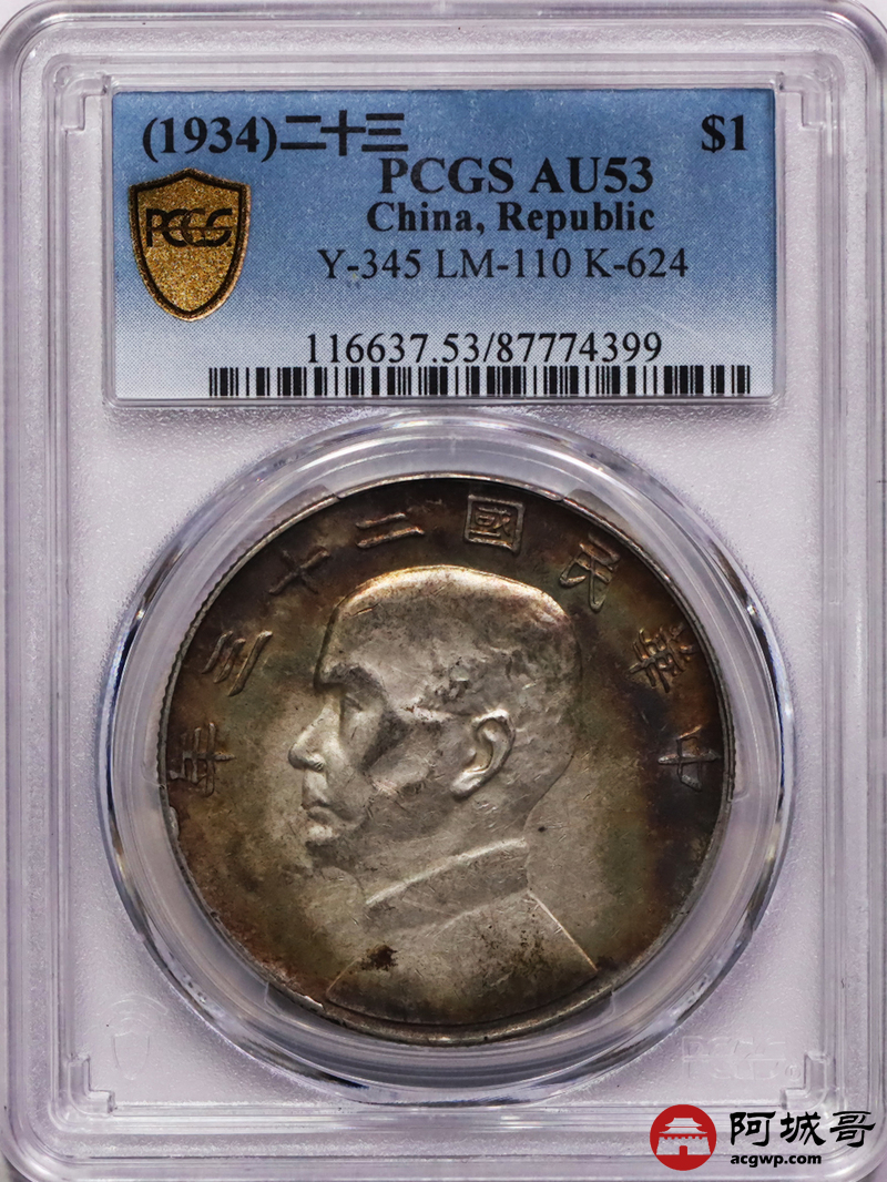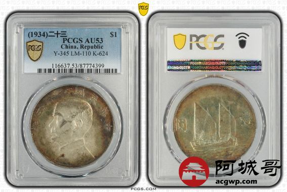 Lot:1 环五彩 底光 二十三年船洋 PCGS AU53