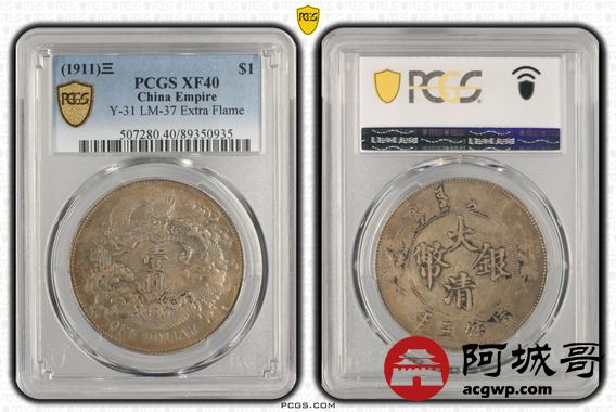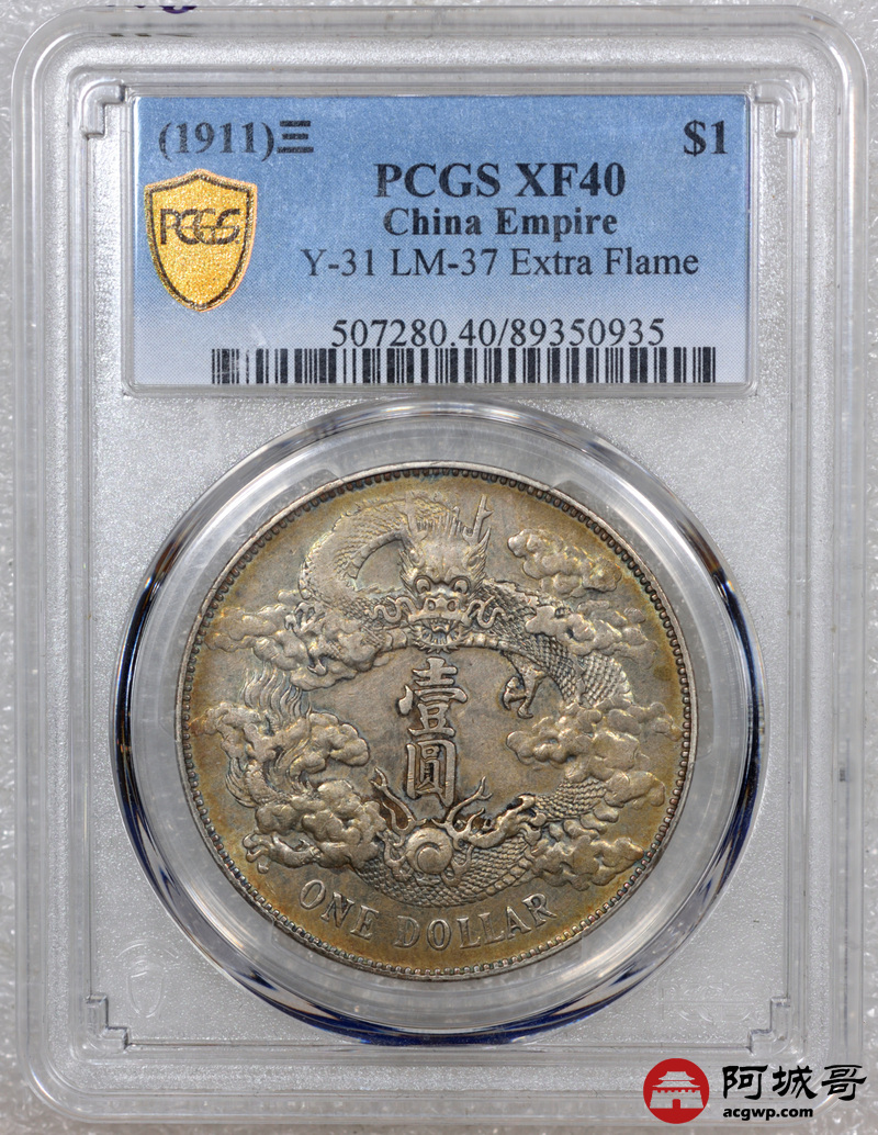Lot:15 原味 满五彩 大清宣三壹圆 PCGS XF40