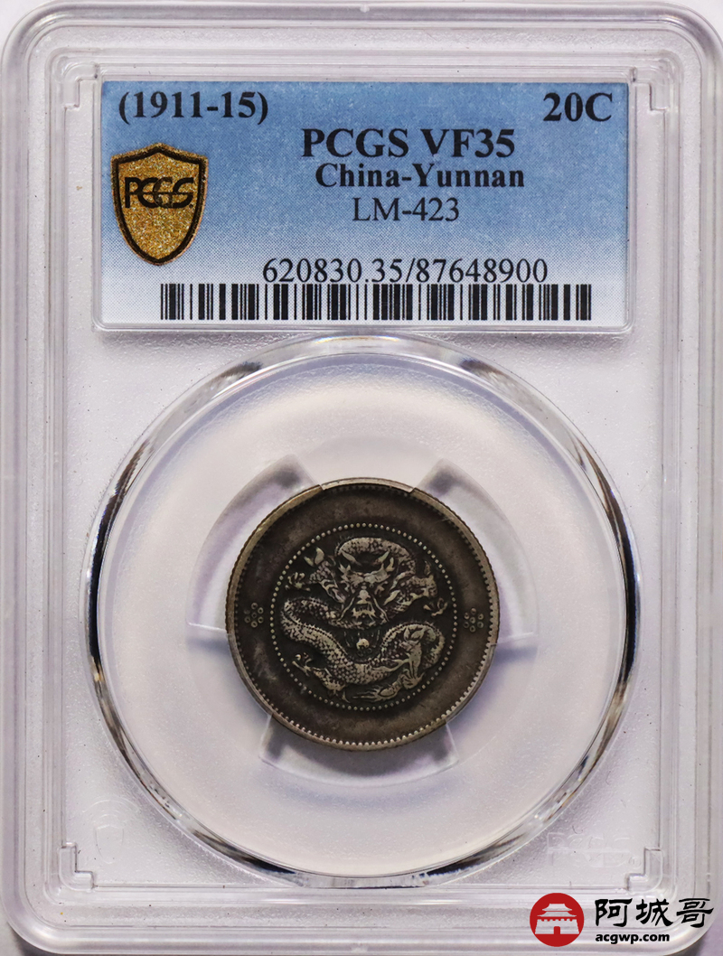 Lot:32 原味老包浆 云南困龙一钱四分四厘 PCGS VF35