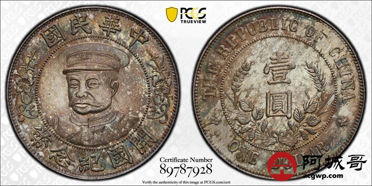Lot:9 五彩 深打 黎元洪带帽纪念币 PCGS UNC