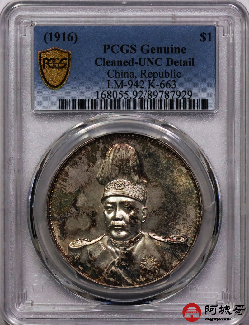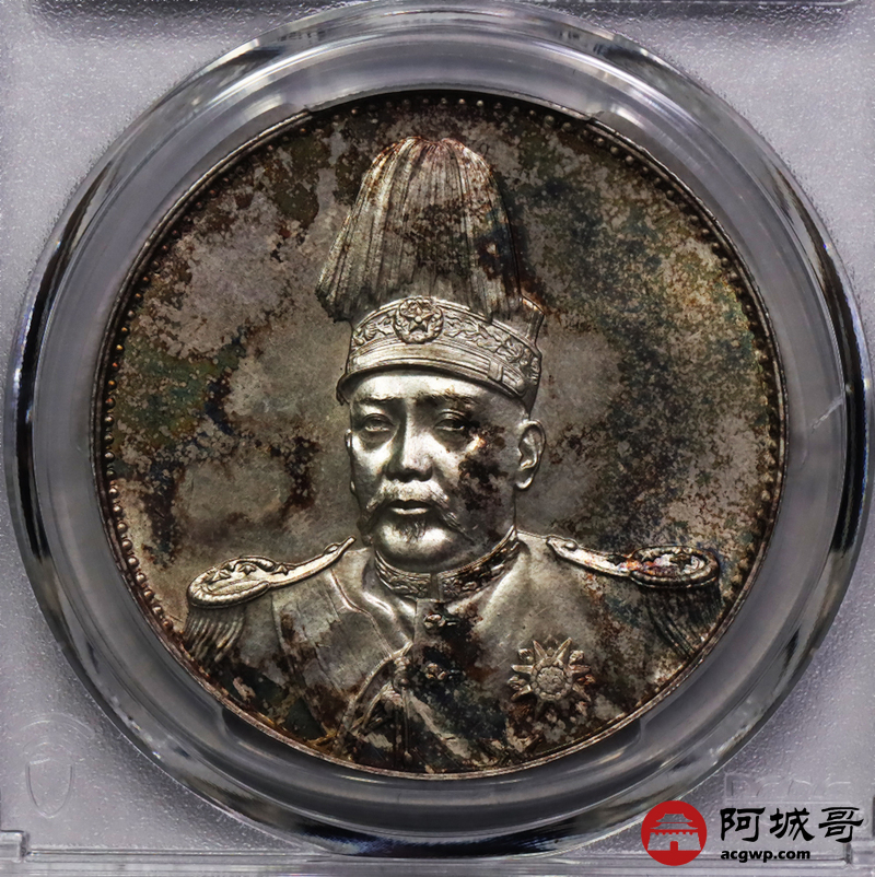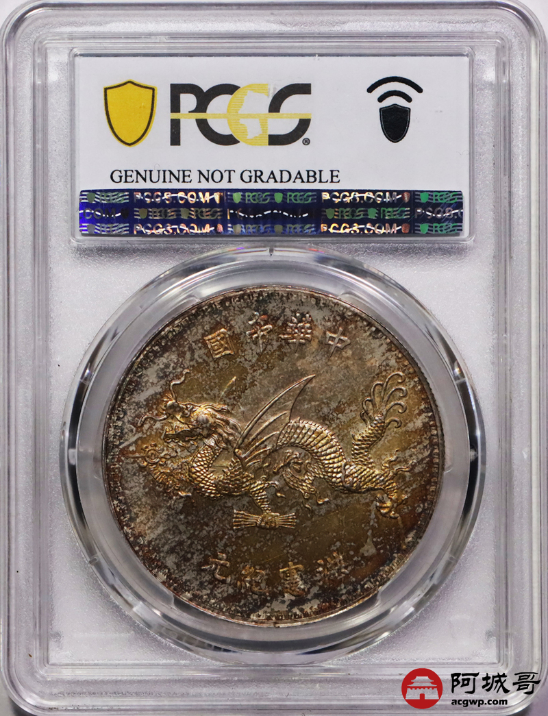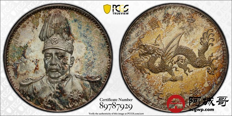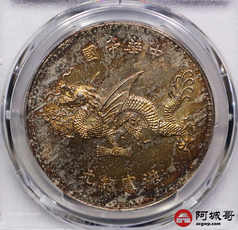 Lot:8 深打 高鼻梁 原光绚丽五彩 袁像飞龙纪念币 PCGS UNC
