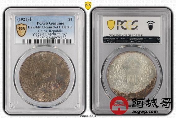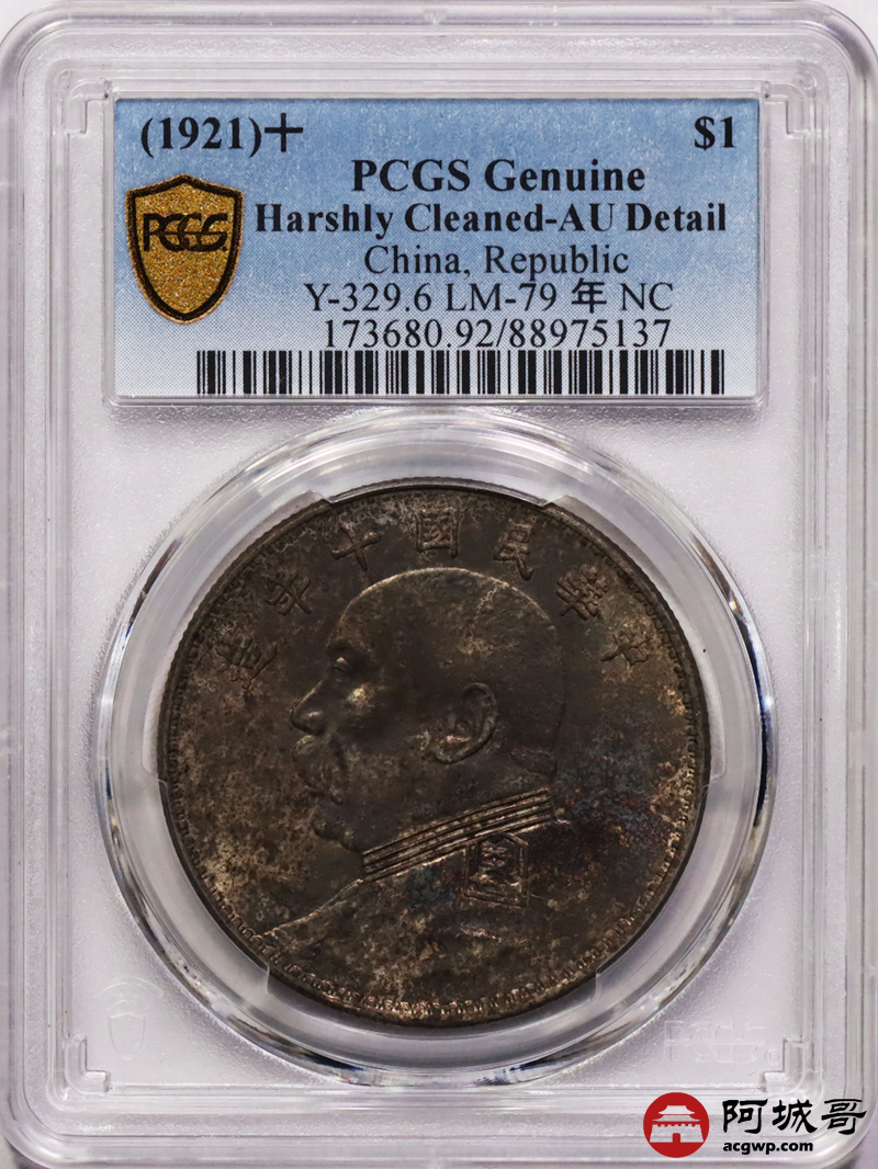 Lot:6 深打五彩转光 十年大头壹圆 PCGS AU