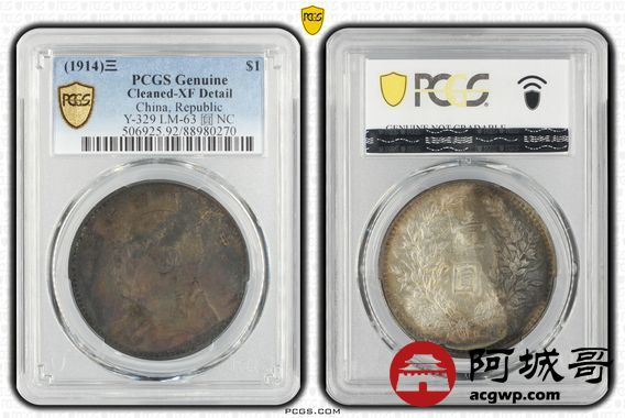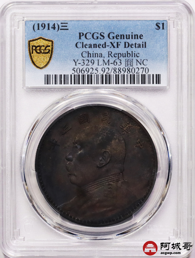 Lot:4 原味酱彩 三年大头壹圆 PCGS XF