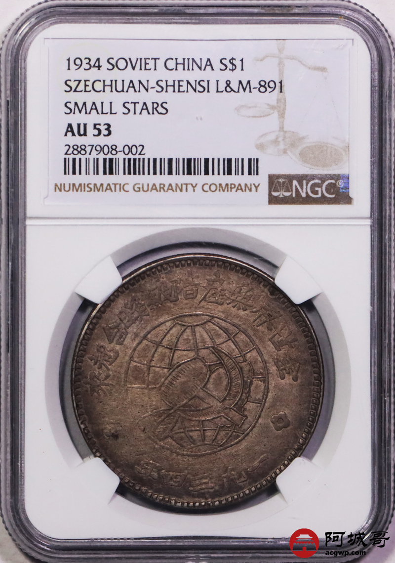 Lot:12 原味 黄油包浆 一九三四年川陕苏维埃壹圆 NGC AU53