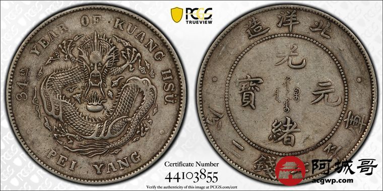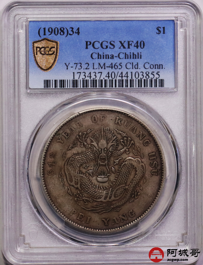 Lot:17 原味老包浆 北洋34七钱二分 PCGS XF40